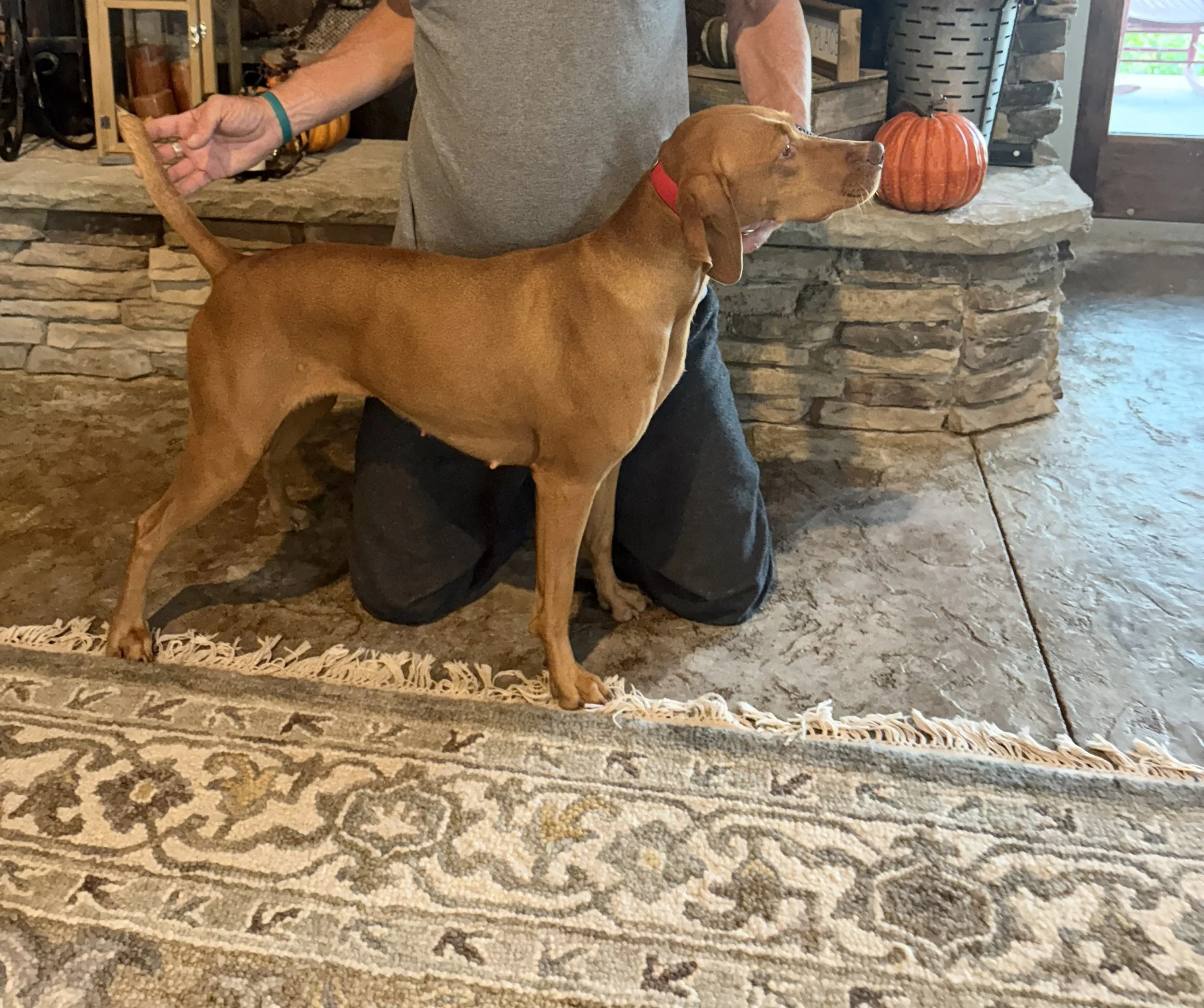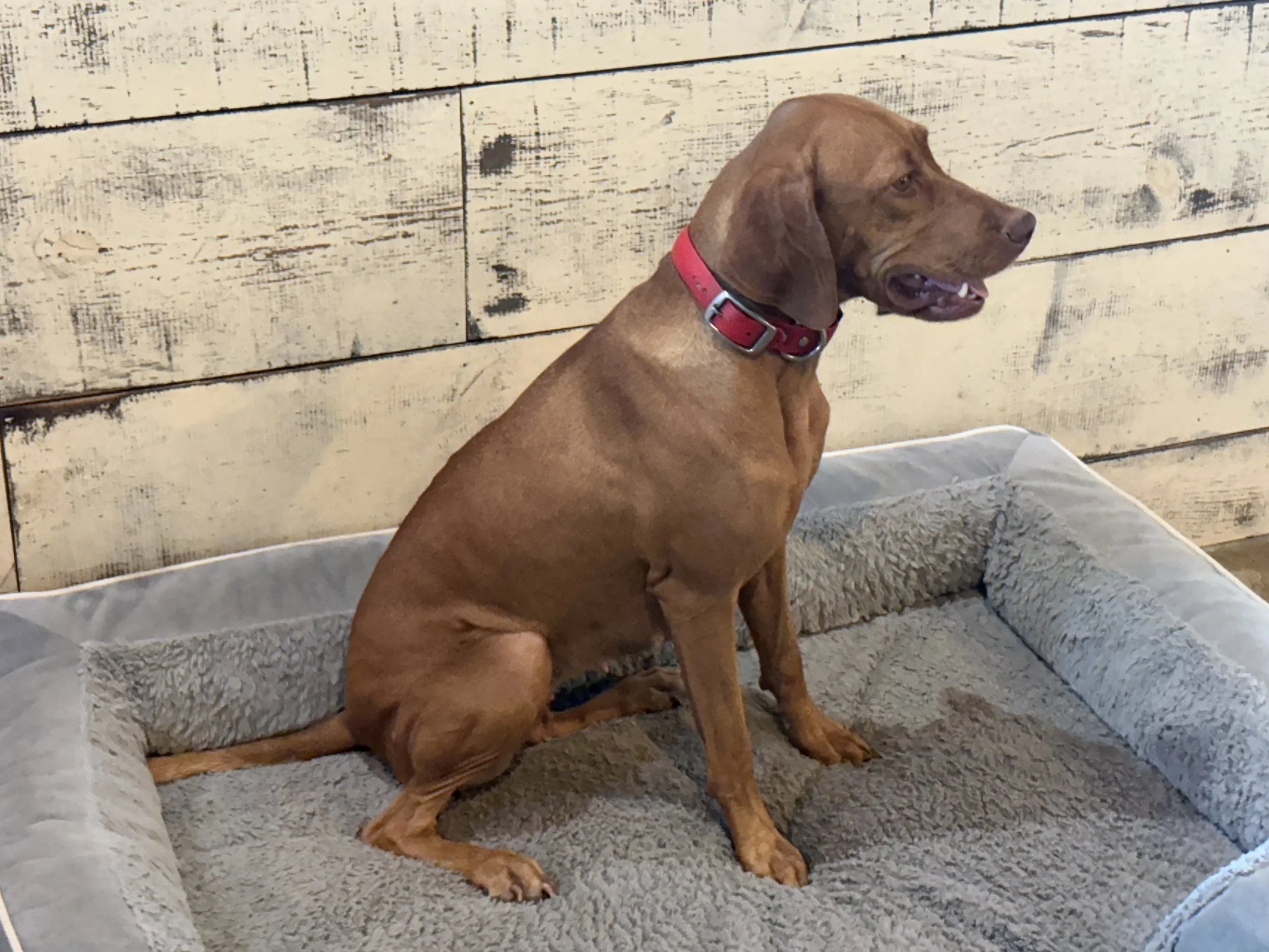 Shavi is an amazing 3.5 year old Vizsla that loves people and enjoys being close to her humans. She gets along well with other dogs and cats and enjoys chasing birds and squirrels when outside. She is crate and potty trained and prefers to eat and sleep in her kennel. Shavi has lots of energy and needs to be in a home with an active family. She also loves to talk but rarely barks. Overall, Shavi is sweet and well socialized and enjoys greeting everyone she meets. For more details please feel free to give us a call.